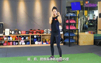 要点:在直拳摆拳勾拳的基础上把动作组合起来 至少两拳以上,可以更好锻炼到核心及身体的协调性。每组连续1分钟。