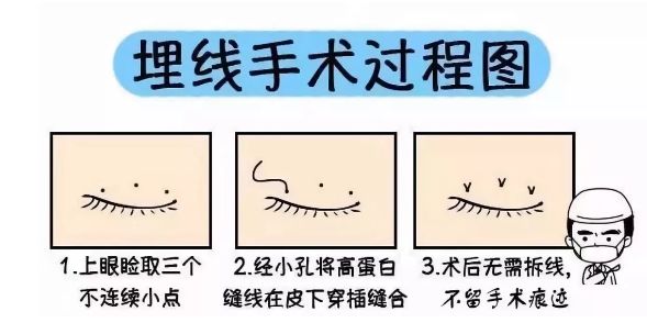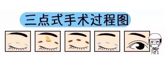 现在市面上很流行的韩式三点,就是在眼皮上设计三个长度仅1毫米的不连续的微小伤口。因为不去除皮肤,术后恢复期相对更短。