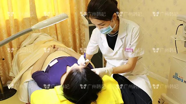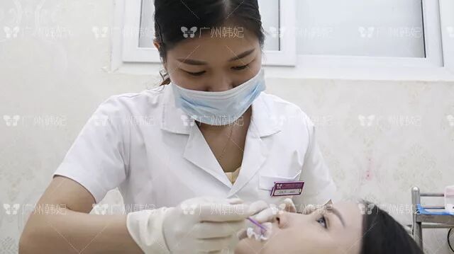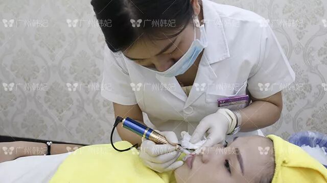 纹绣师通过纹绣仪器将色料刺入皮肤,观察上色情况,然后边重复操作,达到求美者的满意效果。