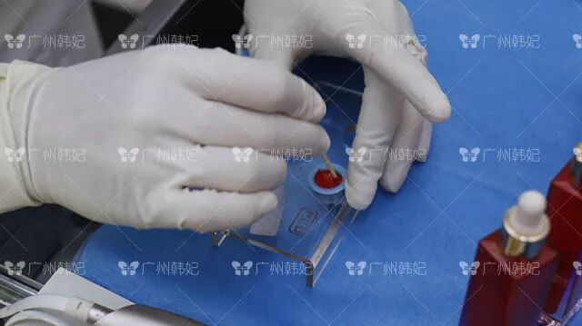 纹绣师先为陈碧霞做唇部局部麻醉处理,然后根据陈碧霞的肤色、唇色以及个人喜好选择适宜的颜色。