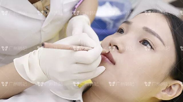 在纹唇操作开始之前,纹绣师用酒精进行唇部和周围皮肤消毒。消毒一般情况下可以用75%的酒精或1%新洁尔灭棉球。