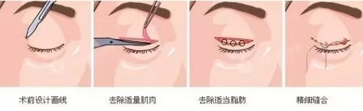 悬眉术:通过切除眉上或眉下部位的皮肤(可含部分眉毛),可上提眉毛或上睑皮肤,调整眉毛位置或眉形,达到纠正轻度内双、三角眼、改善上睑皮肤松弛以及祛除上睑皱纹、部分鱼尾纹的目的。